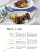 Die gebratenen Spießchen mit dem Paprikagemüse auf Tellern an- richten. Die Pinchitos moruños mit Thymianblättchen garnieren und nach Belieben mit Weißbrot servieren.